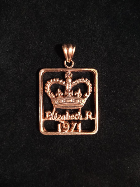 王室の王冠とエリザベスの文字を透かし彫りにして、ペンダントヘッドに加工しました。