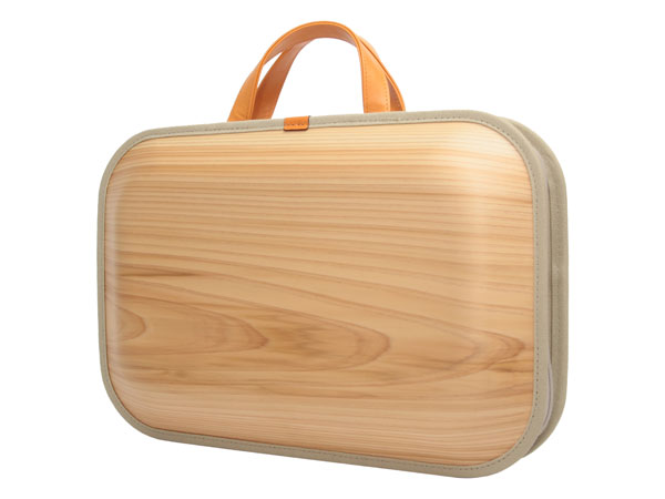 古来から、秀れた建材として重用されてきた、高知県馬路村の良質の魚梁瀬杉(やなせすぎ) を薄くスライスし、重ねあわせて成形されているので、軽く丈夫で、毎日のパソコンや書類の持ち運びもラクラク!