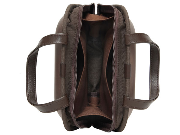 B6サイズの手帳などが入る大きさで、撥水コートの表面処理、天然皮のハンドルや、ダブルファスナー、内部両面のインナーポケットなど、使いやすさも考え抜かれているので、季節や場所を問わず、幅広いシーンで便利に使えます。