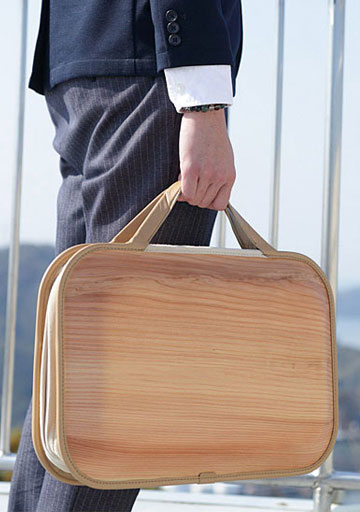 杉を薄くスライスして作られているので、大変軽く、毎日のパソコンや書類の持ち運びにも便利です。