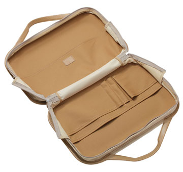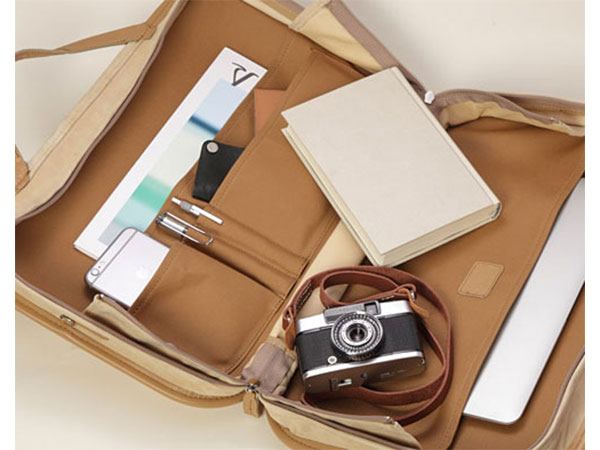 monacca-kakuシリーズをブラッシュアップしました。スエードの他、ふんだんに使った天然皮革のアウターリムと、ビジネスにも使える機能的なマルチポケットのインナー、書類が取り出しやすいフルオープンのマチが特徴です。