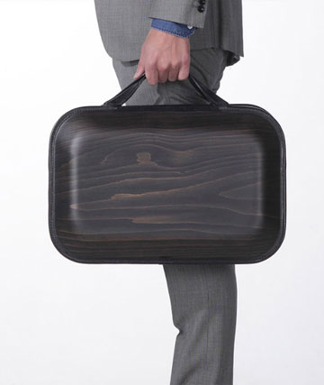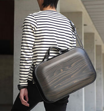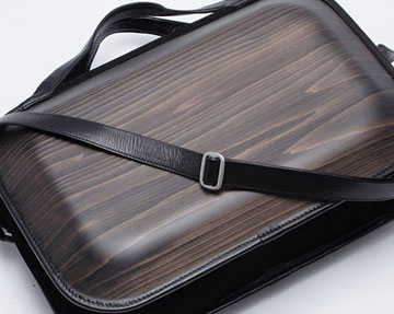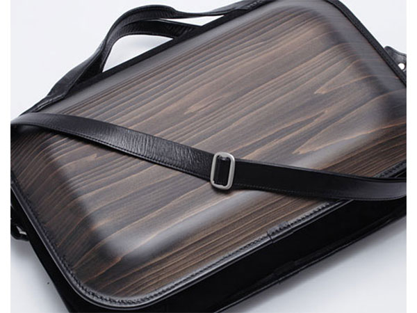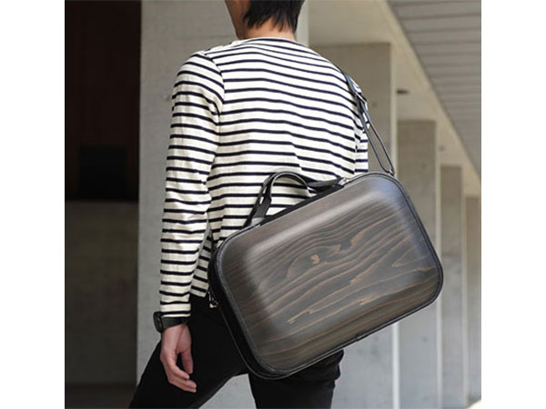 杉を薄くスライスして作られているので、大変軽く、毎日のパソコンや書類の持ち運びにも便利です。撥水コートされているので、水に濡れても安心!