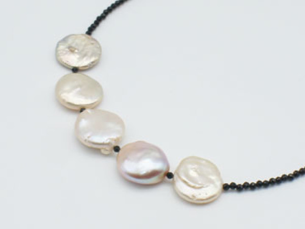 ○ 6月の誕生石 淡水パール(ひし形5個)・ブラックスピネル ネックレス |