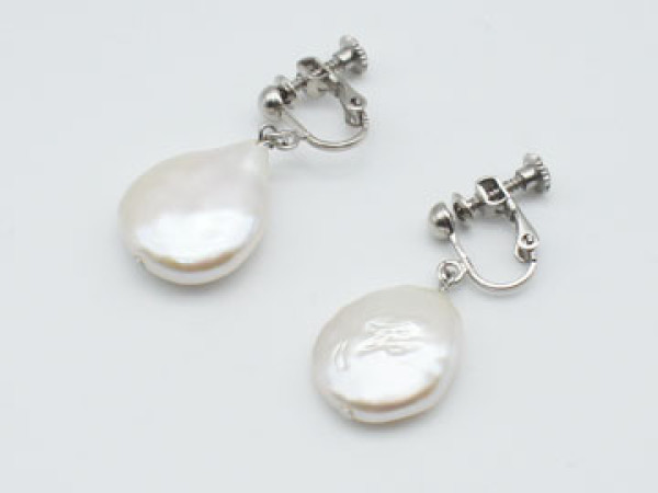 天然淡水パールのイヤリングです。金具部分が真鍮メッキでできています。 自然の造形を使用しているため、写真とは淡水パールの形や色が異なります。あらかじめご了承ください。