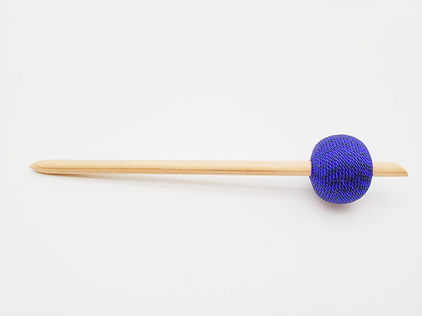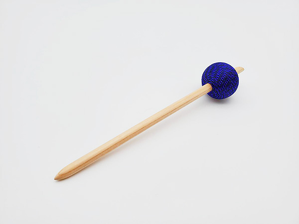 1.ヒノキの木を、直径約6ミリに削ります。 2.ブナの木の玉に、ヒノキの軸の太さに合わせた穴を開けます。 3.ヒノキの軸と、ブナの木の玉を合わせて、強度を確かめ、ニスを塗ります。 4.ブナの木の玉に、正絹を巻いていきます。 「隙間なく、綺麗に巻くには、コツが必要ですね。」(岩渕さん)お手入れ方法